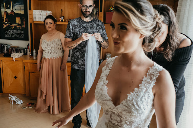 Eu sempre suspiro quando vejo uma fotinho desta noiva em alguma rede social...e não é à toa que isto acontece. A Thays é aquele estilo de noiva que aparece no atelier e que na primeira entrevista a gente já se encanta com a pessoa, e torce para que volte e desenvolva todo o projeto do vestido com a gente. Se tivesse uma nota para dar para as noivinhas ela com certeza seria nota 10, simples assim! O resultado do vestido ficou maravilhoso e do jeitinho que a Thays sonhou, a renda original toda recortada e rebordada fazendo diferentes nuances no corpo e no tule da saia, e o crinol da barra dando aquele diferencial entre a saia sereia do forro e o godê de tule. Sem mais delongas, curtam todas as fotos que não são poucas deste casal talentoso Vêro e Bruno, que nós curtimos muiiiito!